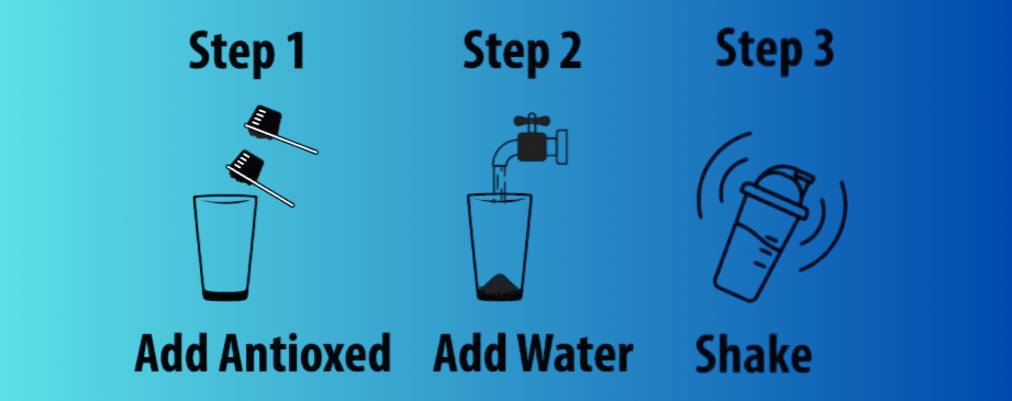 Mix Antioxed in a tumbler or any sealable container for best results and shake for 5 seconds.